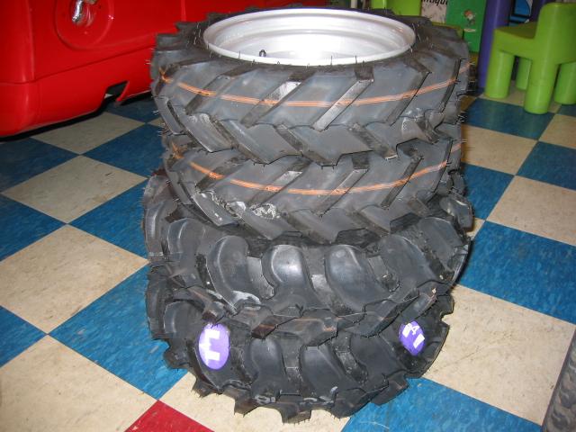 This is a BRAND NEW set of 4 genuine Honda factory original ag tires and rims (2 front, 2 rear) for a Honda RT5000, H5013, or H5518 tractor that I will sell only as a complete set. Ag rims and tires must be used together; ag tires don’t fit on turf rims and vice-versa.